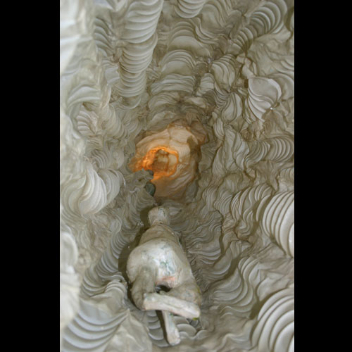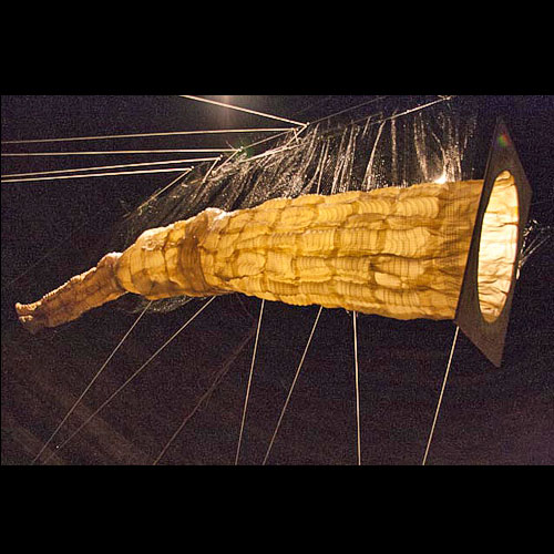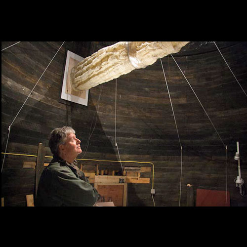 For the Shelburne Museum's National Paperwork in 3-D show in Shelburne, Vermont, we installed a 20 foot long sculpture in the silo of the round barn. The only view into the space was through a three-foot tall window, so the viewer peered into a mysterious tunnel.